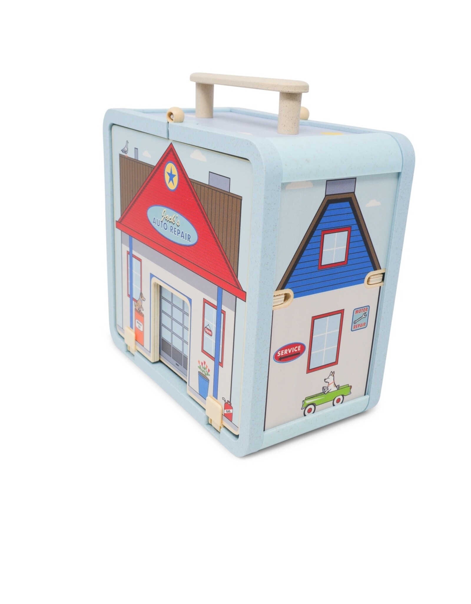 Our Suitcase Series encourages portable play and imagination-on-the-go. Each wooden suitcase opens up to a world of fun. The 16-piece Auto Repair Shop has everything you need for hours of fun, including cars, lift, retro gas pump, customers, mechanics, and more!